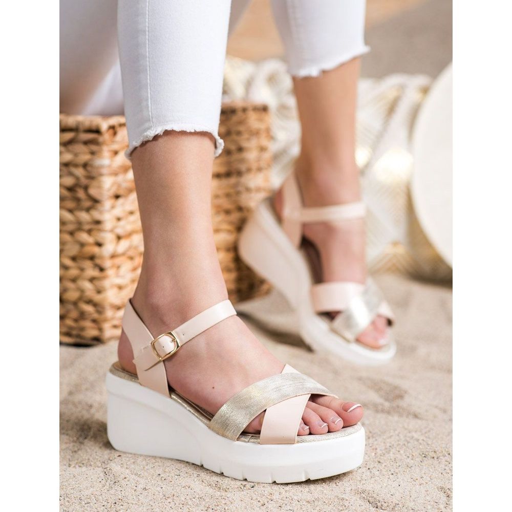 Discover exceptional style and comfort with the Small Swan wedge sandals in beige with gold accents. These elegant women's shoes are the perfect choice for a variety of occasions - both for evening outings and everyday wear. Made of high-quality imitation leather, they look extremely fashionable and are practical at the same time.