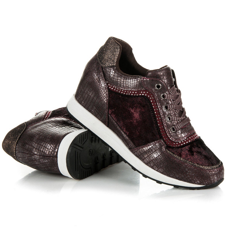 Discover a unique style with burgundy wedge sneakers from the Kylie brand! These extremely fashionable women's shoes combine an original design with exceptional comfort. The intense red color, enriched with an unusual burgundy print, makes them a perfect choice for women who want to stand out from the crowd.