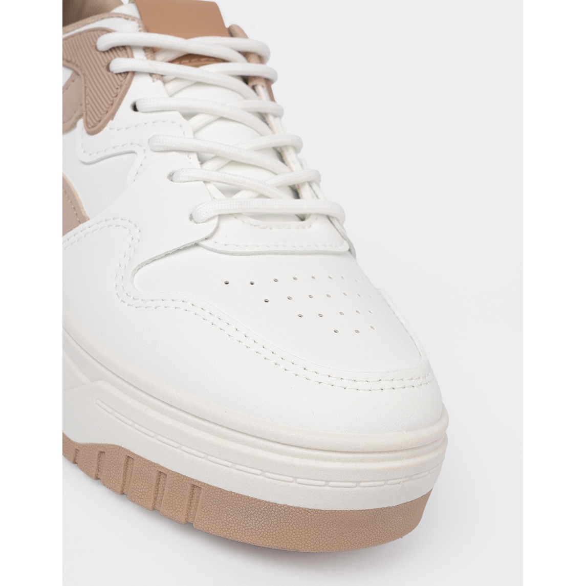 Details: Shelvt White and beige sneakers on the platform