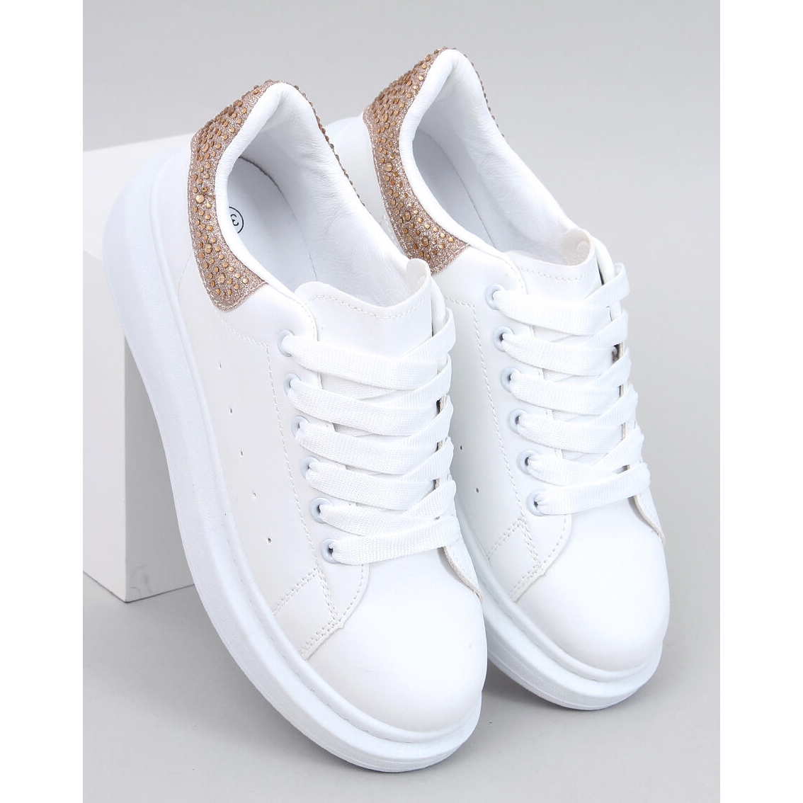 Discover unparalleled comfort and style with our white and gold sneakers on the platform! These women's sports shoes combine a classic cut with modern accents that will certainly catch the eye. Thanks to the glitter inserted with zircons, they become the perfect choice for every occasion, both on a daily basis and for exceptional outputs.