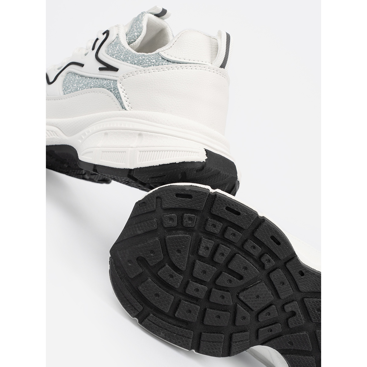 Details: Shelvt White and green sneakers with decorative inserts