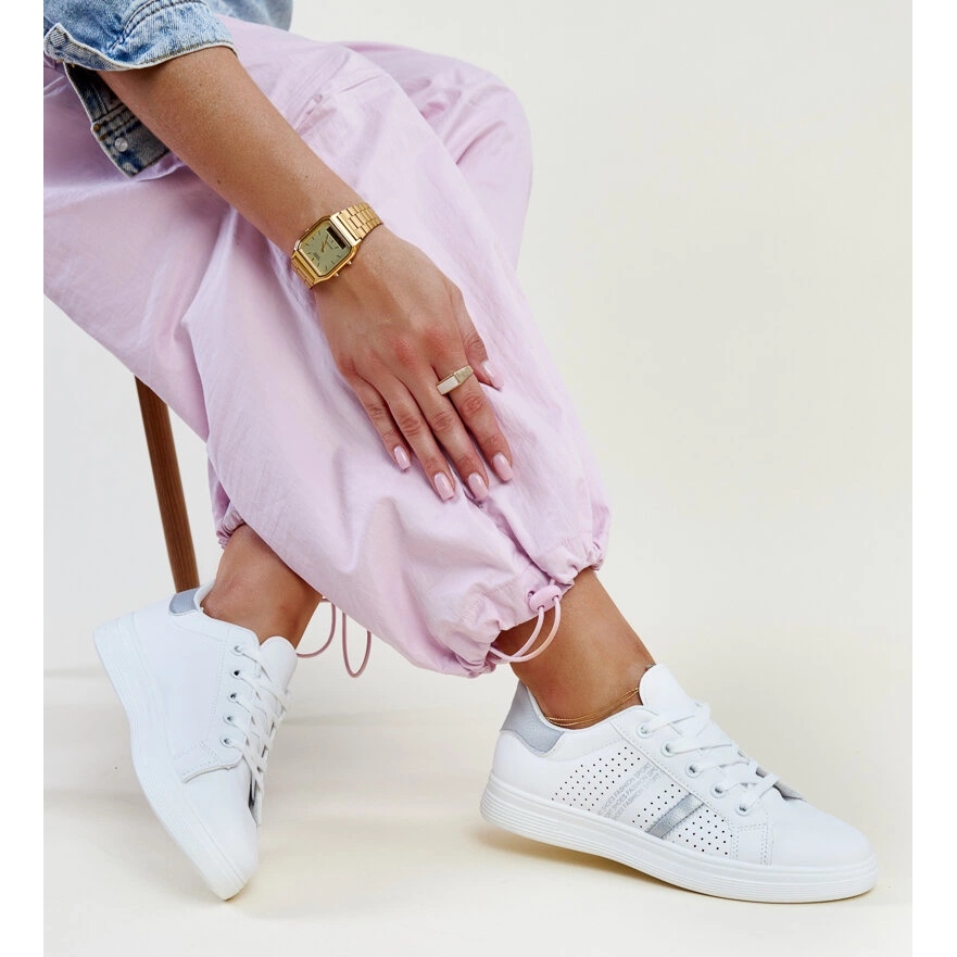 We present Berdine white and silver sneakers, which combine modern style and comfort. These low, lace -up shoes, made of high quality eco leather, are a great choice for all women who want to look fashionable and feel comfortable all day.