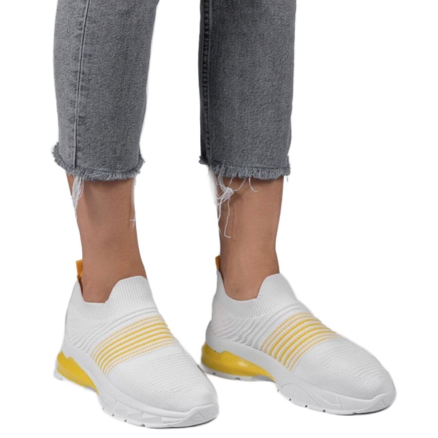 Inna marka White and yellow sports slip-on shoes 8087-SP