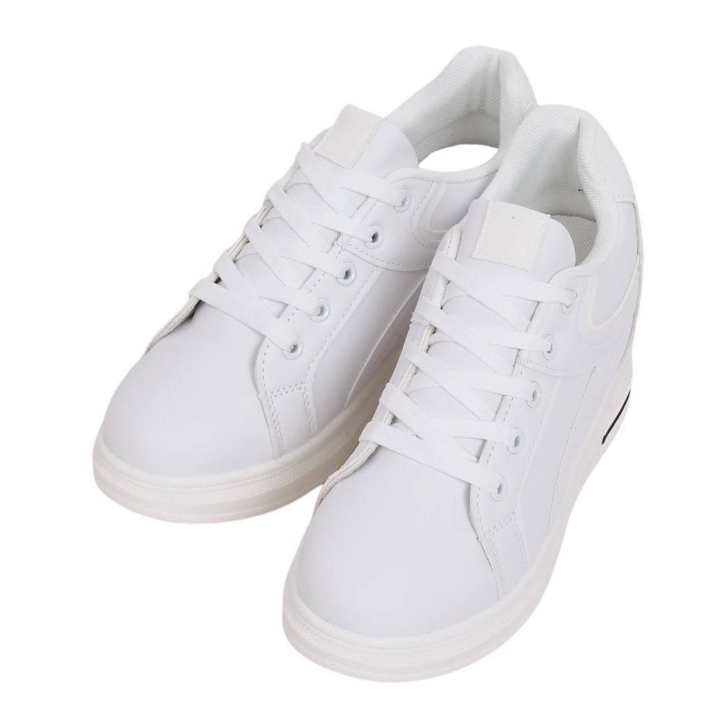 Details: White BY-0370 WHITE / WHITE sneakers on a hidden wedge