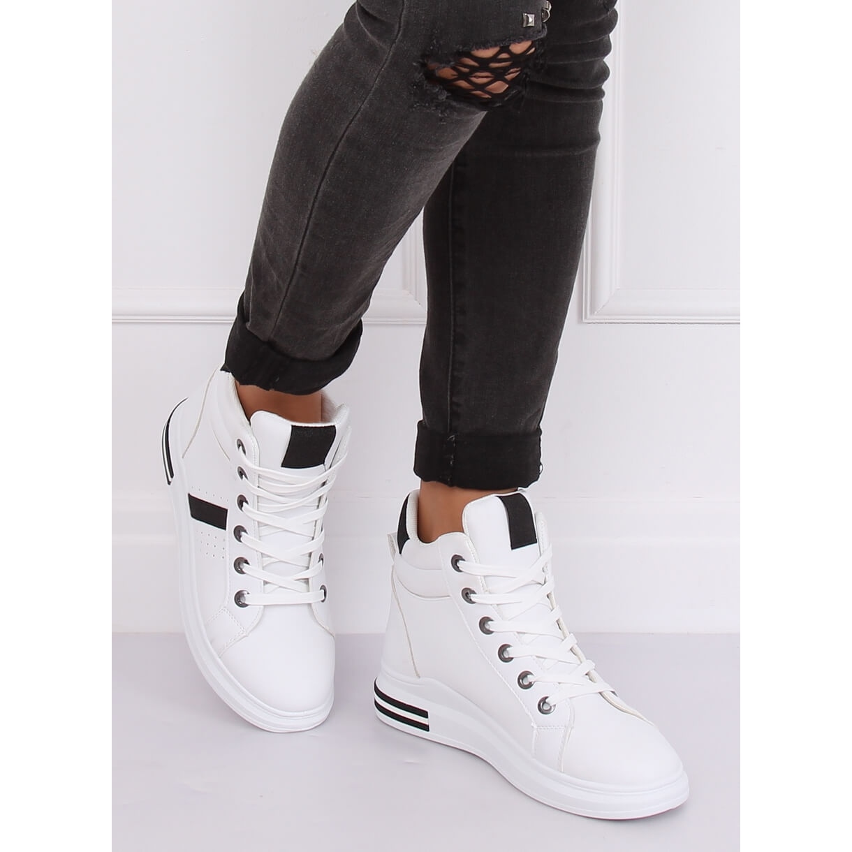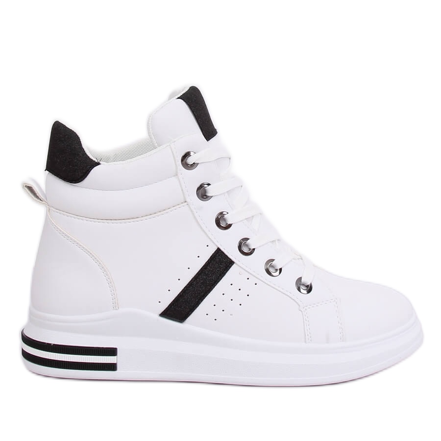 Discover the white ankle-high sneakers CB-19078 WHITE/BLACK – perfect for any occasion! These lace-up women's sneakers draw attention with their stylish form and shimmering glitter inserts, which add a unique character to them. The high sole with a height of 3 cm not only increases the comfort of wearing, but also affects the fashionable look, which perfectly matches various styles.