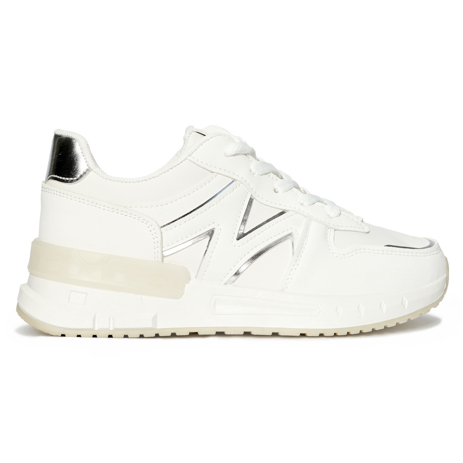 Our sneakers are distinguished by a minimalist design in a shade of white with additional silver accents, which makes them a perfect complement to both everyday and sports stylizations. Without a pattern, a neutral color makes them easy to combine with various clothes.