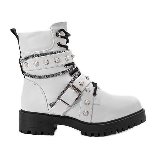 With a shaft height of 15.5 cm and a flat heel of 4 cm, these shoes combine both style and comfort. Perfect for autumn and winter, the white worker boots with pearls from Dr. Martin are a must-have in every fashionable woman's wardrobe!