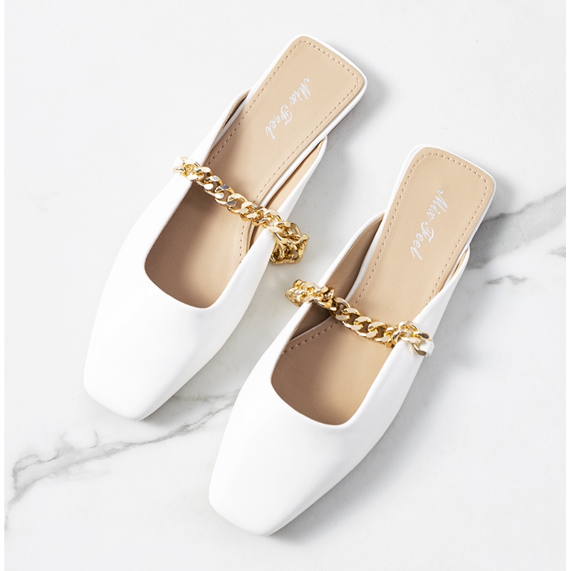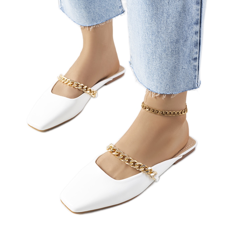 Classic, white bales flip flops are a combination of minimalist elegance and everyday comfort. Perfect for urban stylizations and summer outputs - they will work with both the dress and jeans. The subtle chain gives them a stylish character, and the square nose emphasizes the modern cut.