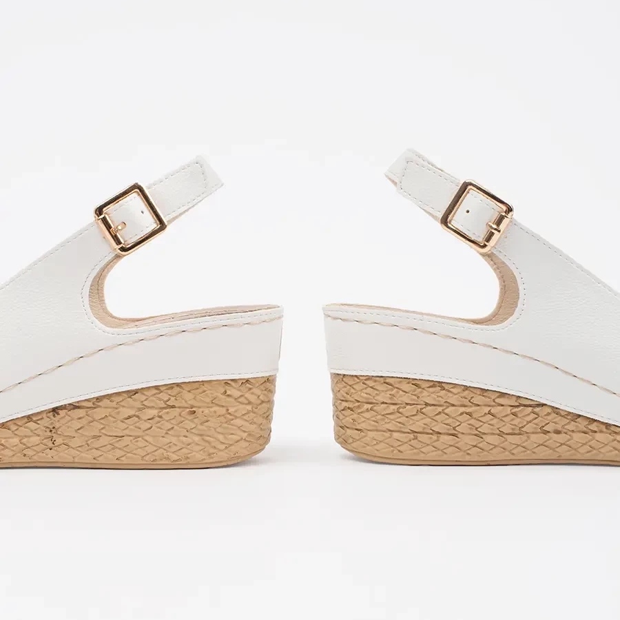 The open heel design makes these sandals airy and comfortable, making them a great choice for warm days. The classic espadrille design, with no toe, adds lightness, and the white color makes them a perfect match for both everyday and more elegant outfits. The sandals are elegant and casual, making them a universal accessory for various occasions - from parties to everyday outings.