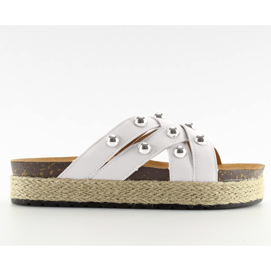 Discover the CK22P espadrille flip-flops in an elegant white color, which will perfectly complement any summer styling. These unique women's flip-flops stand out from the others thanks to the high sole trimmed with linen string and spectacular details in the form of silver balls, which add character and uniqueness to them.