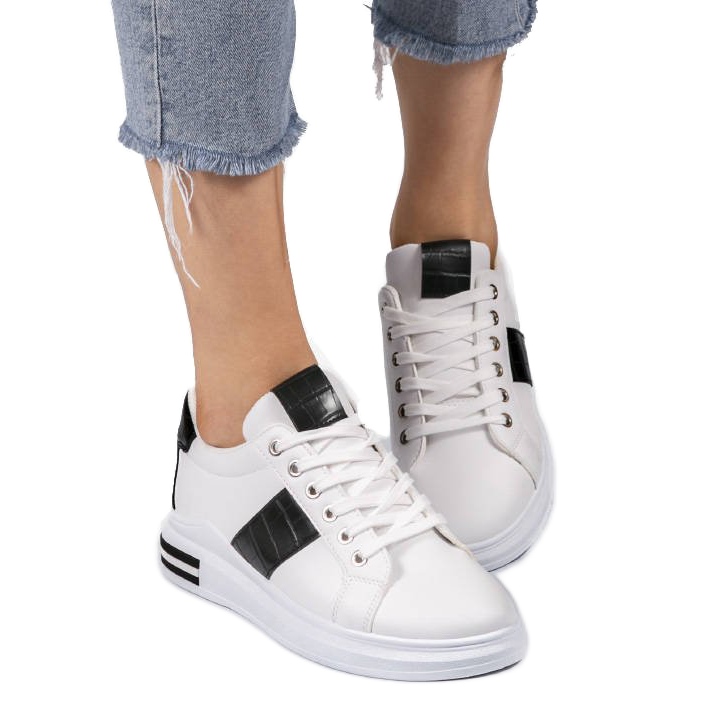 White fashionable sneakers sneakers made of eco-leather C912 are a great choice for women who want to combine style with comfort. These elegant shoes in white, decorated with black details, will perfectly complement any everyday styling, adding it freshness and modern character.