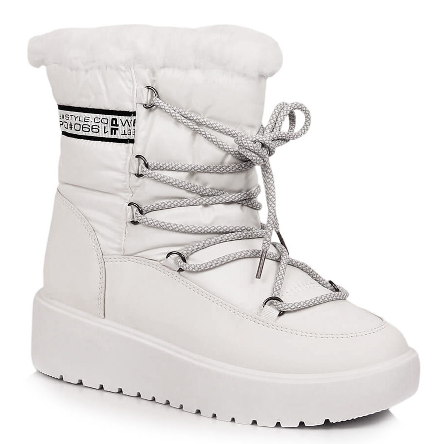 Women's lace-up snow boots in white from Filippo are the perfect choice for frosty days. These stylish shoes combine functionality and aesthetics, providing comfort and warmth during winter walks.