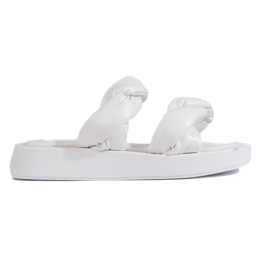 We present white flip flops on a thick sole from a reputable manufacturer, another brand that will be perfect for everyday stylizations. These elegant, here is a refreshing approach to classic flaps that combine comfort with a fashion expression.