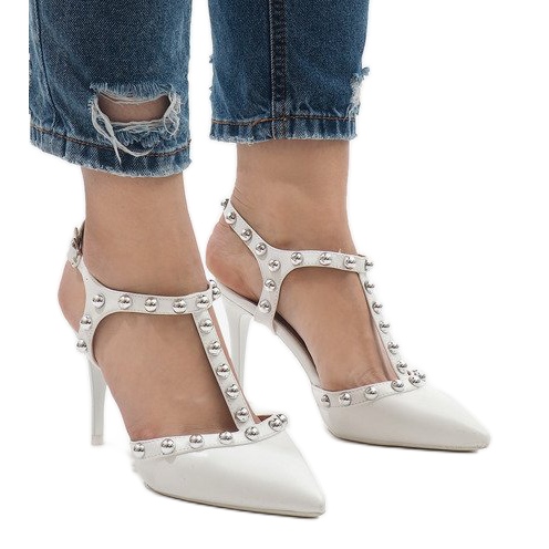 **White patent leather stilettos with studs B-57**