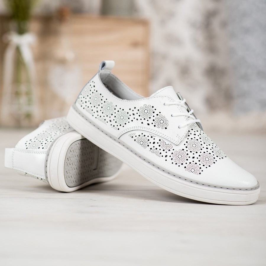 White leather sneakers Goodin are the perfect combination of comfort and elegance, which will certainly appeal to many women. They are characterized not only by an aesthetic appearance, but also by high quality of workmanship, so they will accompany you for many seasons.