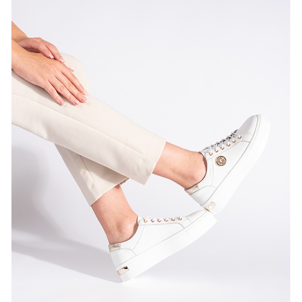 The shoes have been designed for fashionable women who value both comfort and aesthetics. The lace -up clasp allows you to match the individual needs, and the universal white color makes sneakers easily compose with various stylizations. An additional advantage is the golden detail, which gives them a bit of glow.