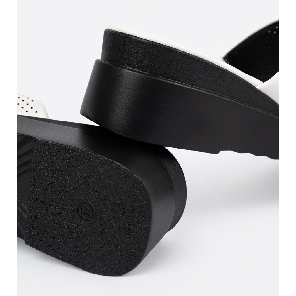 The practical plastic sole guarantees adequate grip and comfort of wearing, making these flip flops an ideal companion on both a walk and during meetings with friends. The classic combination of white color with a black sole makes you easily adapt them to your favorite summer dresses or casual denim styles.