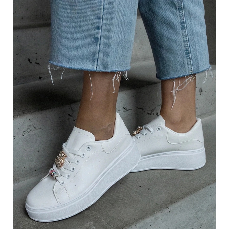 Details: D/CEO White platform sneakers decorated with a Mavien teddy bear