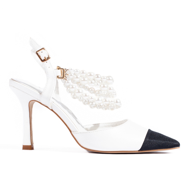 White stiletto pumps with Shelovet pearls - refined elegance and timeless design