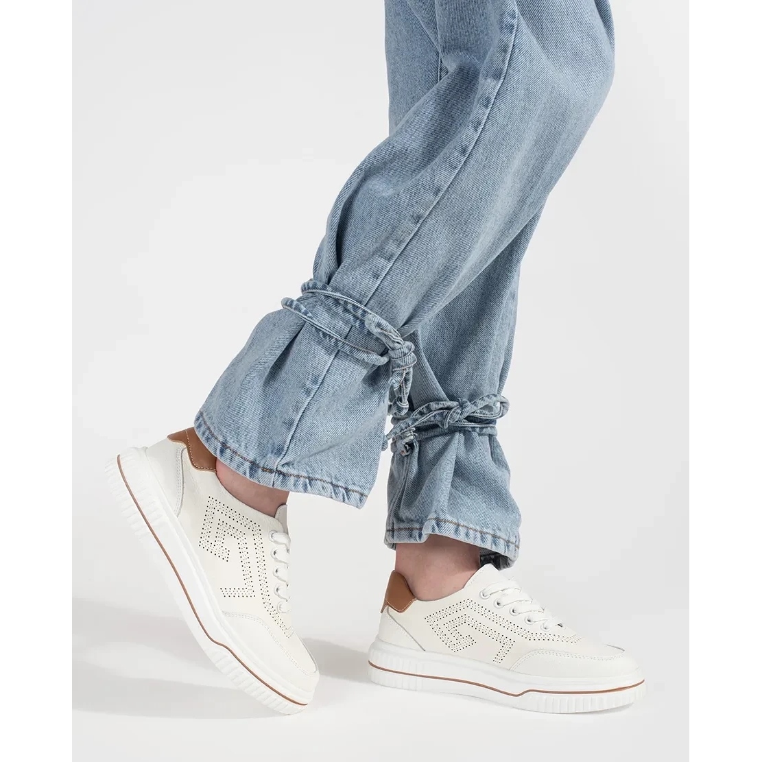 Made entirely of natural leather, Goodin sneakers are not only durable, but also provide optimal ventilation, which makes them a perfect solution for warmer days. The openwork pattern not only makes the shoes look light and effective, but also adheres to the latest fashion trends. White sneakers with subtle beige details match various styles - from sports to casual.