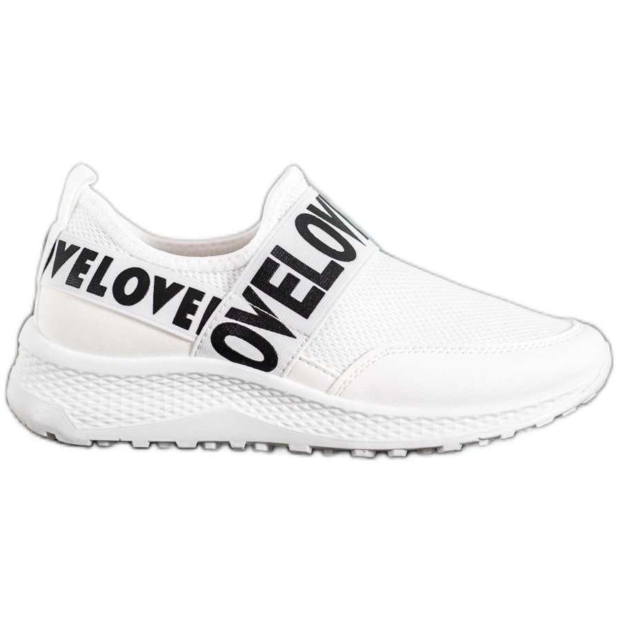 The white Weide slip-ons are the perfect choice for women who want to combine comfort with a fashionable style. Thanks to their slip-on design, these sports shoes are extremely practical and easy to put on, making them perfect for everyday wear. They feature an attractive "Love" inscription in contrasting black, which adds a distinctive character.