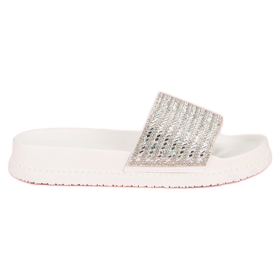Details: White slippers with crystals