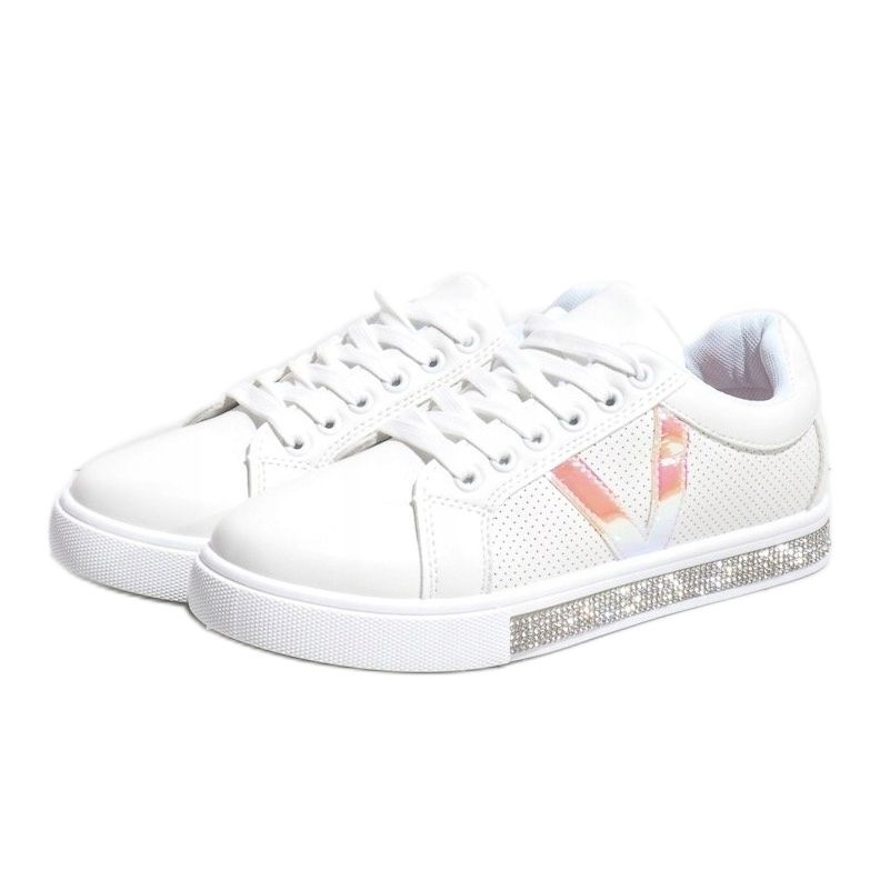 The white sneakers decorated with diamonds X703 are a must-have in every woman's wardrobe. These stylish shoes combine comfort with a fashionable design, which makes them an ideal choice for everyday wear. Made of high-quality leather-like material, they look extremely elegant thanks to the decorative inserts on the sides.