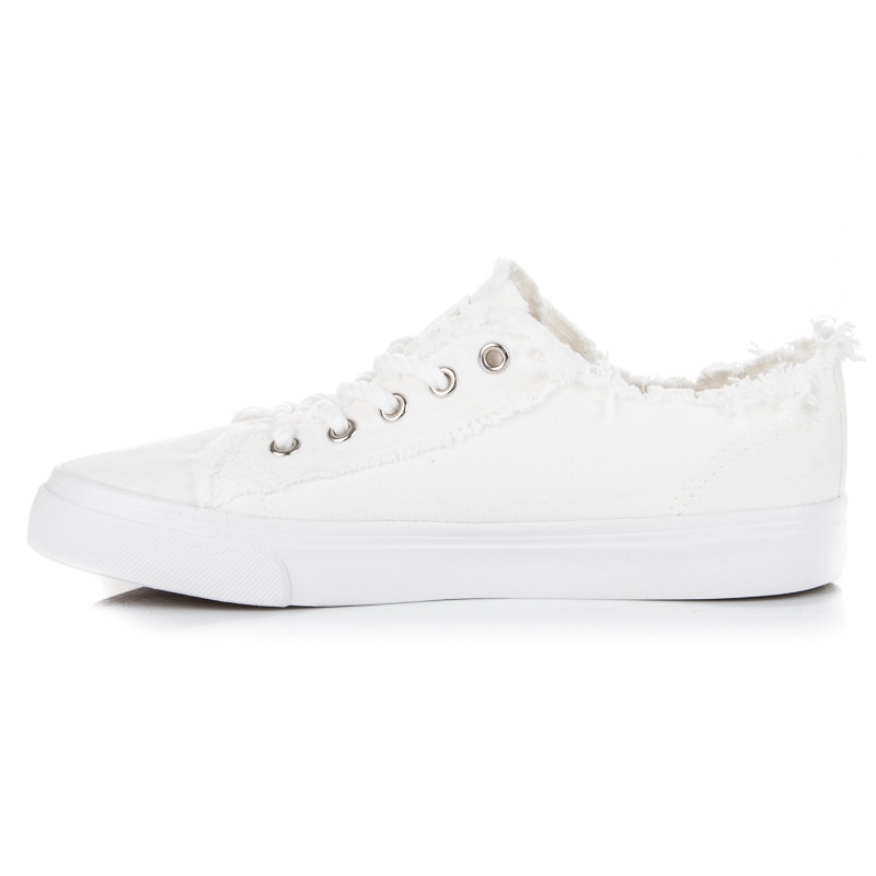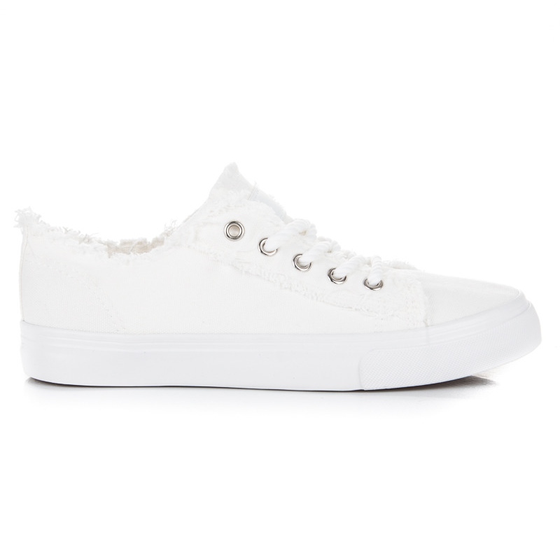 Made of high-quality fabric, white sneakers provide comfort all day long. Their round toe and closed, soft heel counter guarantee comfort, and the lace-up closure allows for a perfect fit to the foot. Thanks to the rubber sole with tread, every drop of rain or small unevenness of the terrain is not an obstacle, and you can enjoy a confident step.