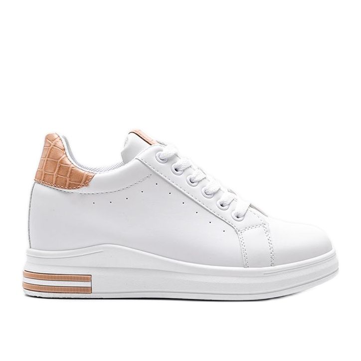 White sneakers on a hidden wedge Halle in beige are the perfect choice for women who value both comfort and style. These elegant shoes made of high-quality eco-leather are distinguished by subtle beige inserts that perfectly harmonize with the main, white color.
