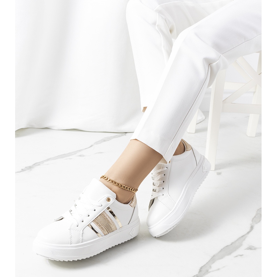 White Goldsmi platform sneakers are the perfect choice for women who value both fashion and comfort. These stylish sports shoes in light shades are a great base for many everyday styles, emphasizing your personality and style. The high 3.5 cm sole not only adds lightness and elegance, but also optically lengthens the legs, which you will certainly appreciate.