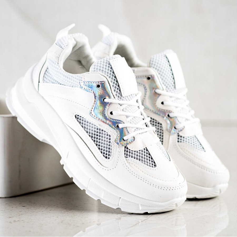 Discover a new level of style and comfort with white platform sneakers from the Shelovet brand. These unique shoes stand out not only for their modern design, but also for their fantastic details, such as holo inserts that beautifully shine in the sun, giving every style a touch of magic.
