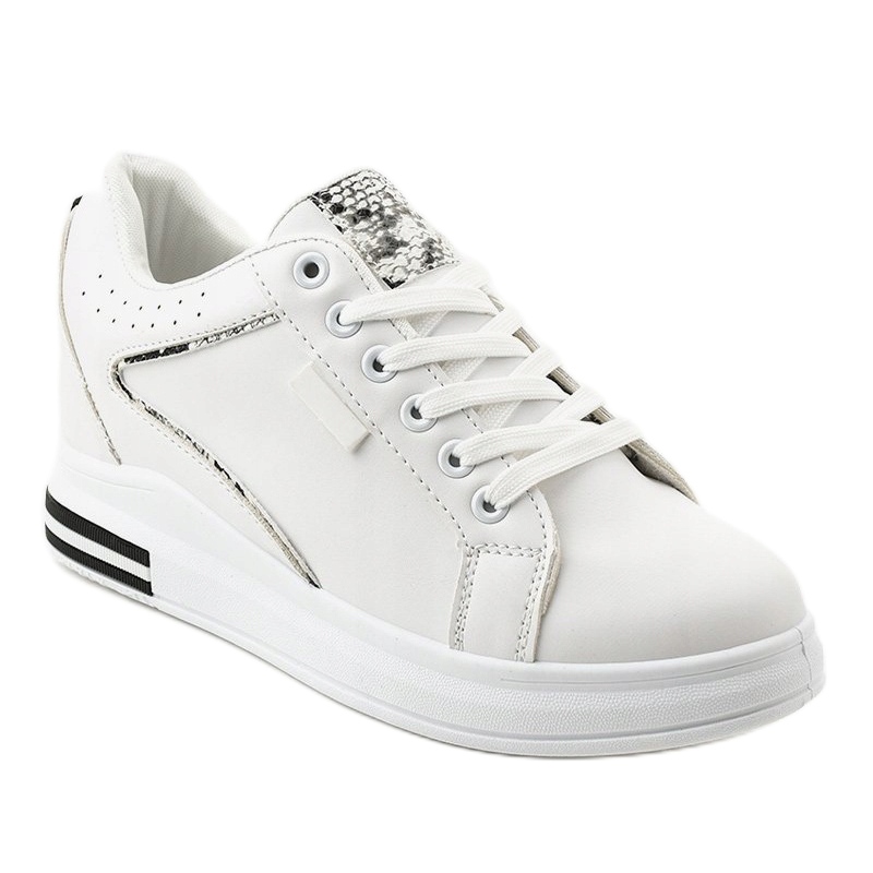 White sneakers SC12 wedges are the perfect choice for women who value comfort and a fashionable look. These stylish shoes feature elegant snakeskin inserts that add a unique character to them. Thanks to this, they are a great base for many different styles - from casual sets to a sporty look.