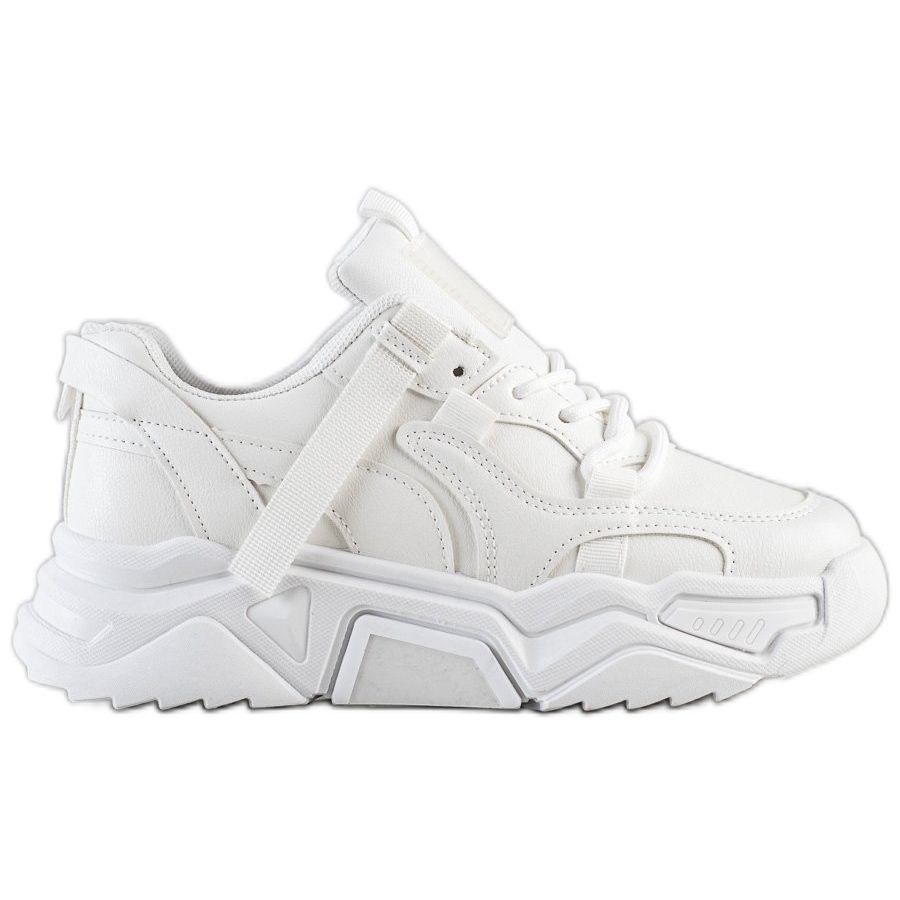 Discover comfort and style in the white SHELOVET sneakers, which will be a perfect complement to your everyday wardrobe. These unique sports shoes are made of high-quality ecological leather, which makes them not only fashionable but also environmentally friendly. Their upper is characterized by a rounded toe and unique plastic elements that give them a modern look.