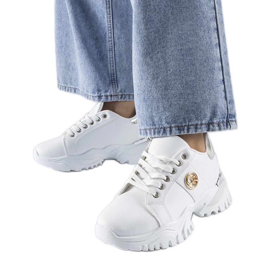 These lace -up sneakers are extremely versatile - they blend in perfectly with both jeans, as well as dresses or skirts, which allows you to create a variety of styles. White color is a great base that matches all shades and designs, thanks to which these sneakers will be a great addition to any wardrobe. They bring a bit of sports slack and freshness, and their massive sole guarantees stability and comfort.