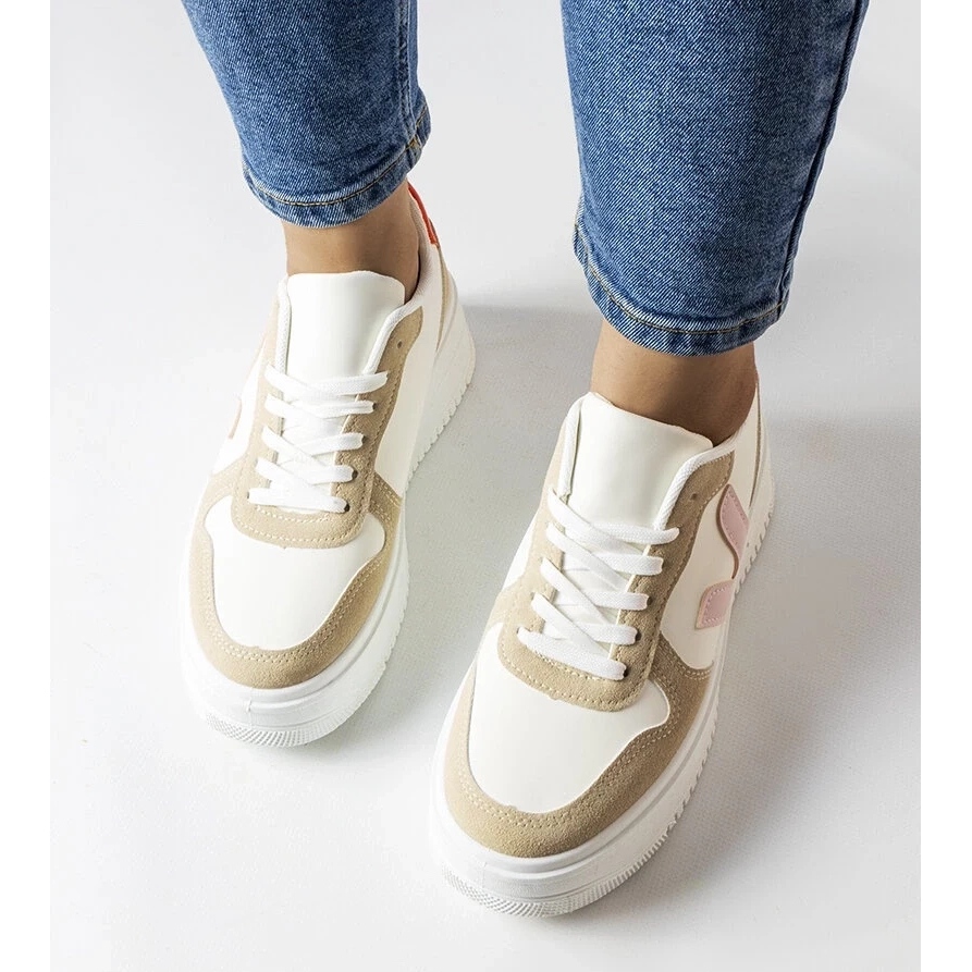 White sneakers with a pink Plouffe insert from the manufacturer D/GMR is a hit of this season that will certainly attract the attention of every fashion lover. These stylish sports shoes are distinguished not only by modern design, but also with a high, rubber sole that provides comfort when wearing. The strong advantage of the sneakers are the inserts from the eco -leather in a unique color, which give them a unique character.