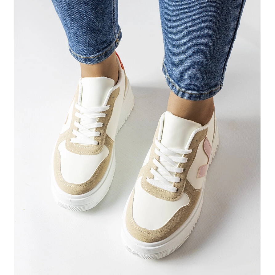 White sneakers with a pink Plouffe insert - stylish, comfortable and universal women's shoes, perfect every day.