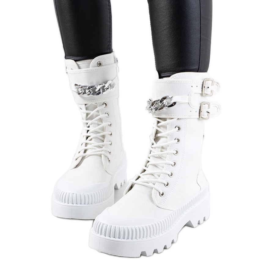 We present the white Taus chain sneakers – extremely stylish and comfortable footwear that will perfectly complement any summer styling. The high, tractor sole not only provides a fashionable look, but also excellent grip and comfort during use.