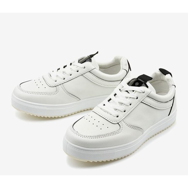 White sneakers with black inserts KK-203 are a great option for women who value comfort and a fashionable look. Made of high-quality eco-leather, the footwear stands out not only with its elegant design, but also functionality. Black accents on the white upper give them a modern character, and the varnished finish adds attractiveness.