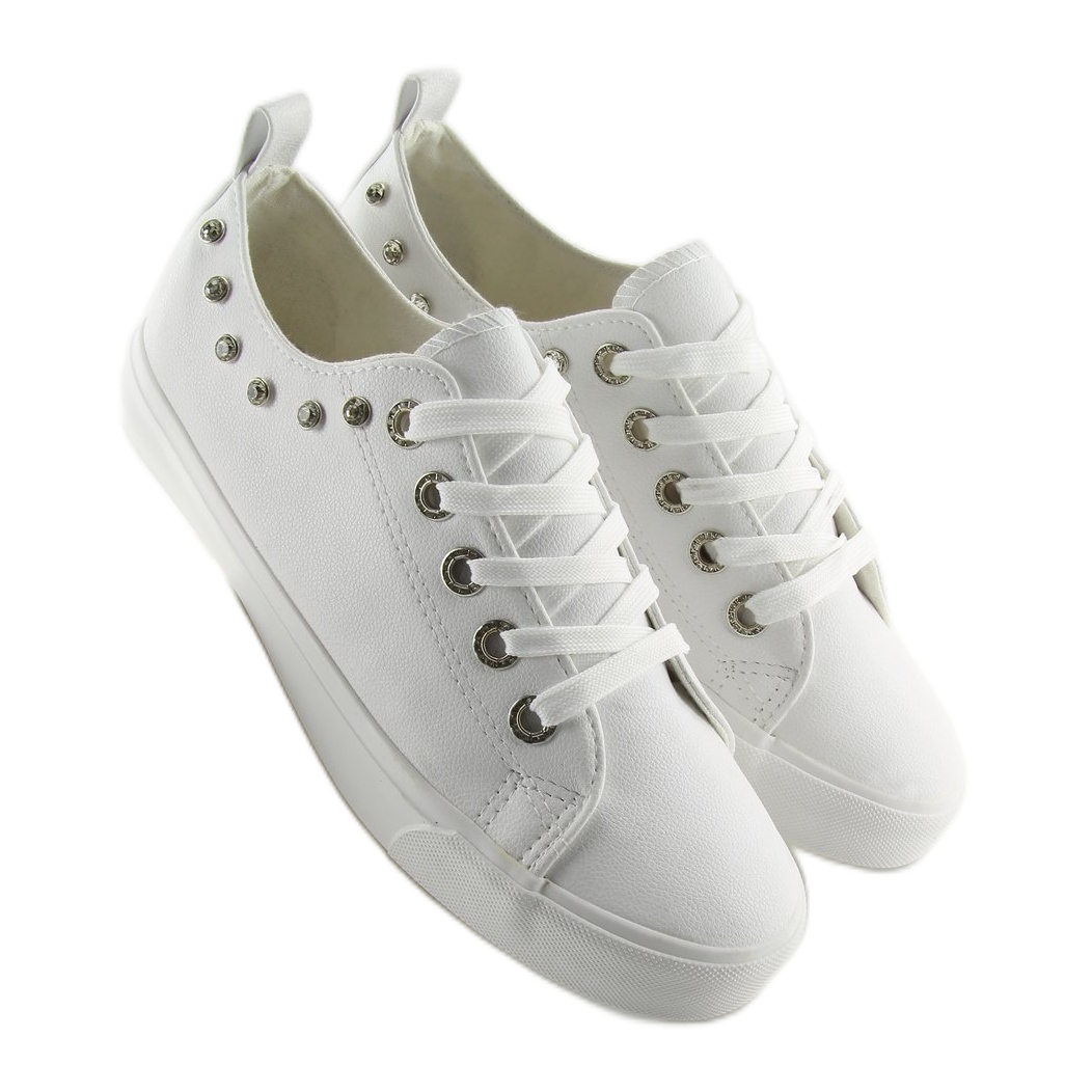 Details: White sneakers with cubic zirconia BL122p White