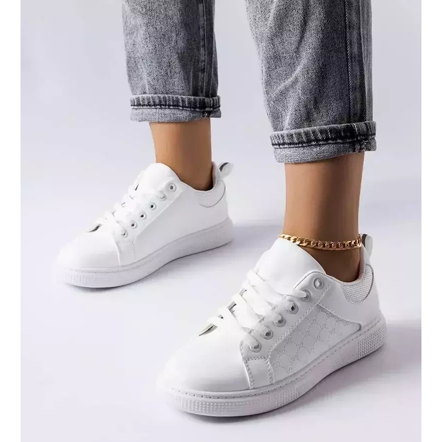 The white Dreux embossed sneakers by BM are the perfect choice for women who want to combine comfort with a fashionable look. Made of smooth eco-leather, these sneakers attract attention with subtle details such as a decorative heel counter and embossing on the outside. Their minimalist design makes them a great match for both casual and elegant styles.