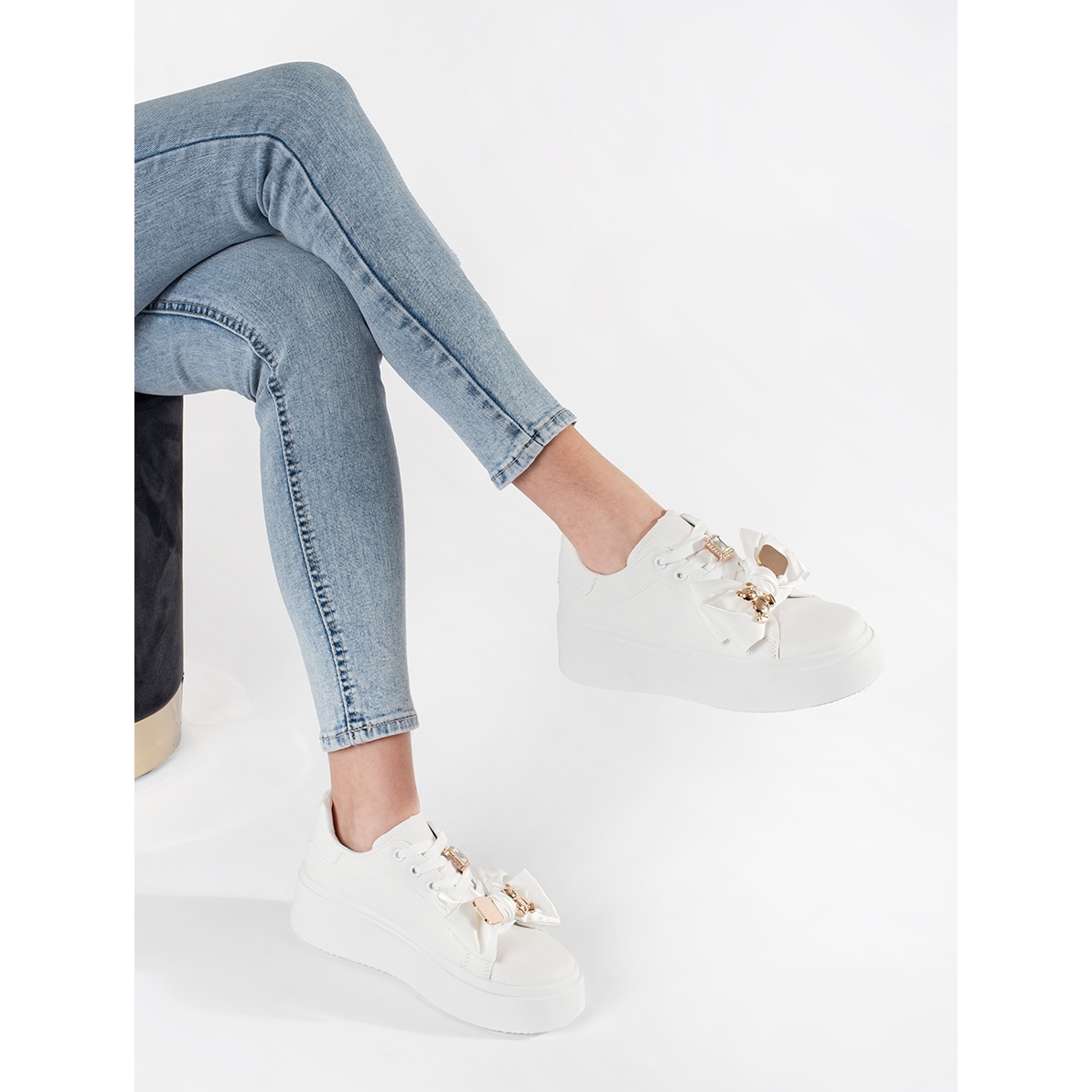 Model stability is provided by a plastic sole with a height of 5 cm, and a 4 cm high platform adds a subtle style, matching various styles. Golden accents in combination with the classic white sneakers give them a luxurious character, which makes them work both on a daily basis and on more elegant occasions.