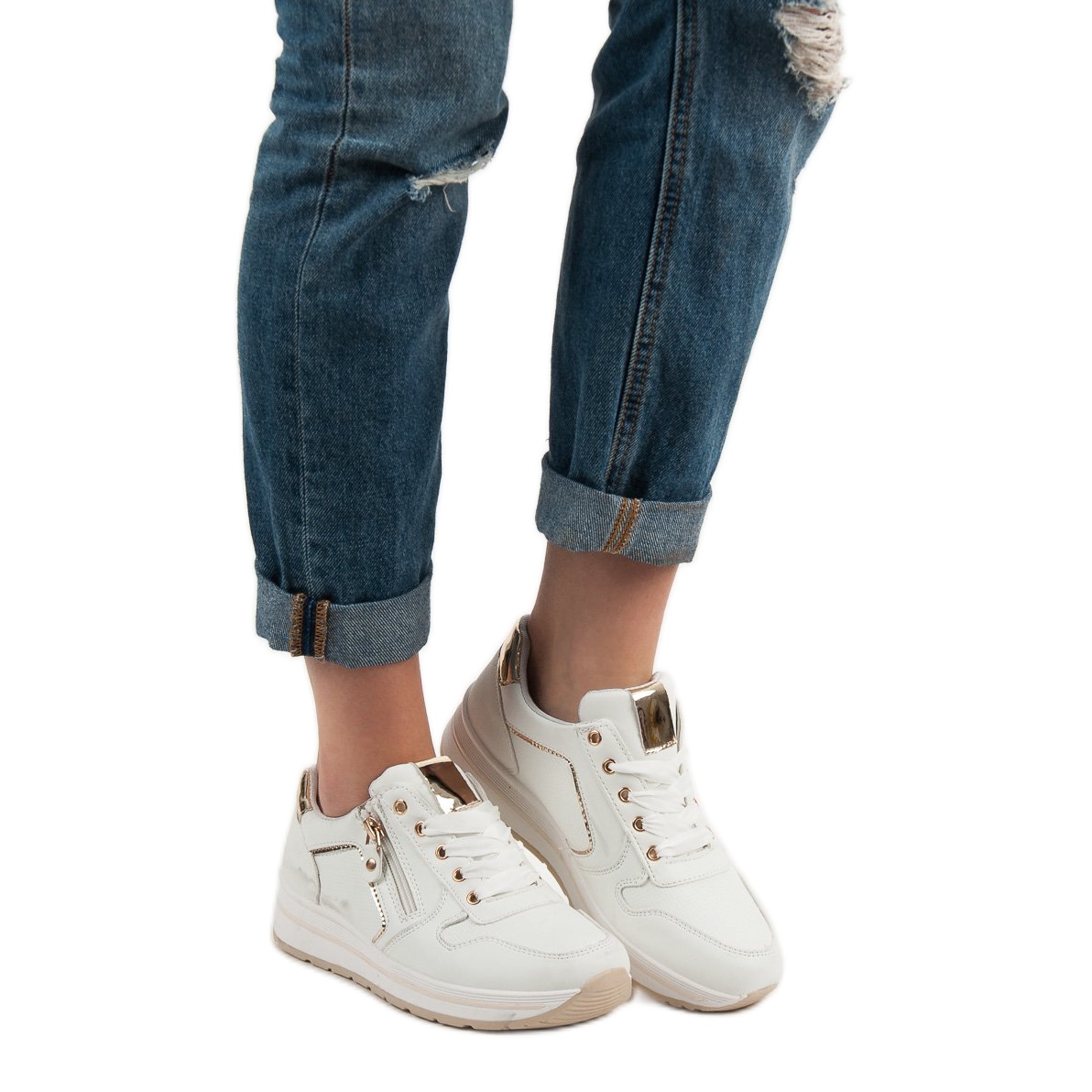 Discover exceptional style and comfort of wearing with white sports shoes from SHELOVET! These extremely original shoes will certainly attract the attention of every woman who is looking for fashionable accents in her wardrobe. They are characterized by an effective zipper and elegant gold inserts, which give them a unique charm and make them one of the hits of this season.