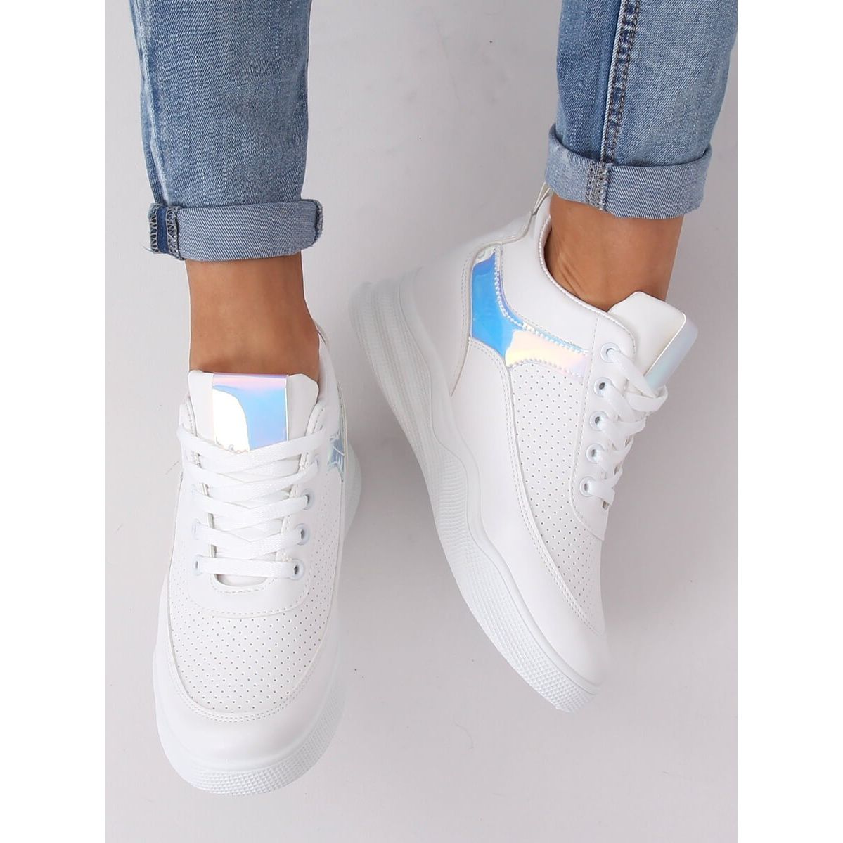 Inna marka White sports shoes on the wedge heel 85-429 WHITE / SILVER