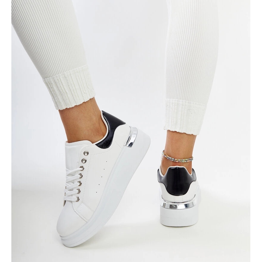 We present white sports shoes with a black gemre insert - a great choice for every fashionable woman who values not only style, but also comfort. These elegant shoes are characterized by a low, round nose, which provides not only comfort, but also lightness, thanks to which they are perfect for everyday activities.