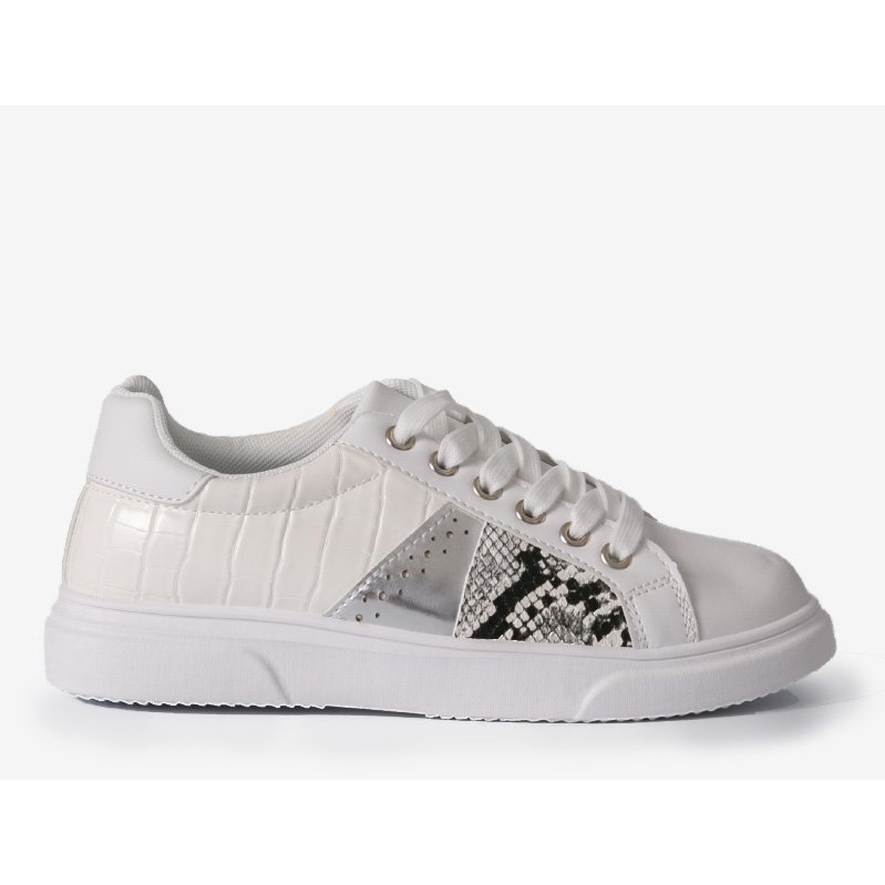 White stylish women's sneakers BK928-9 are a unique model that fits perfectly into current fashion trends. Their main advantage is pure white, enriched with unique silver inserts and a snake motif, which give the shoes a unique character.