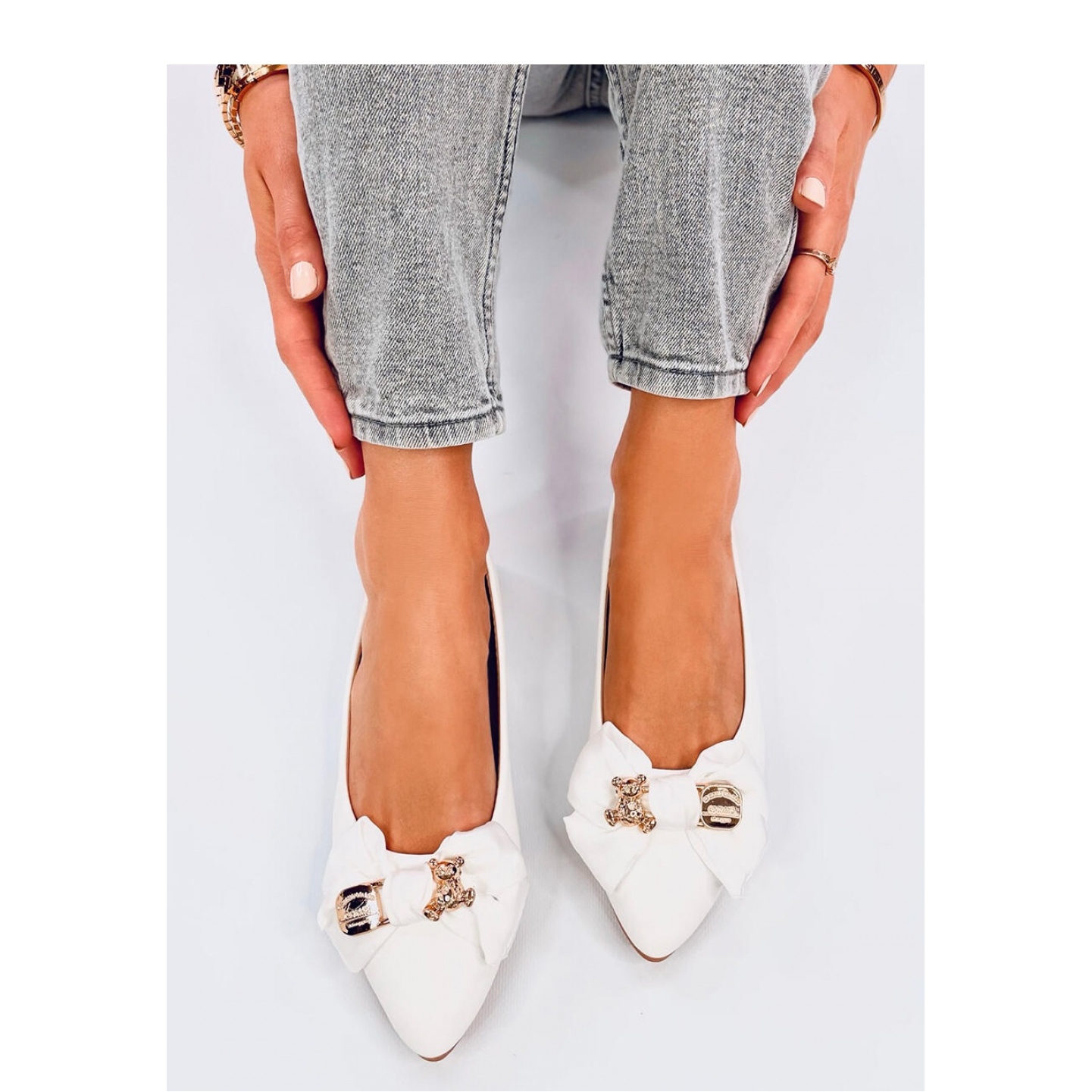 Discover the extraordinary elegance and comfort in ballerinas with a white white bear, ideal for all women who want to combine style with comfort. These shapely ballerinas delight with their minimalist design, supplemented with a beautiful satin bow, decorated with a golden safety pin and a charming bear - details that give them a unique character.