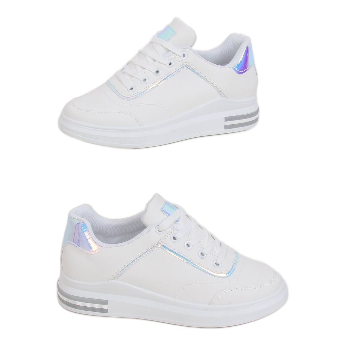 Discover fashion and comfort with the women's white 1239-Y Silver sneakers in shades of gray! These lace-up sneakers are the perfect choice for women who value style and comfort every day. Thanks to the hidden 5 cm high wedge, your legs will optically lengthen, and you will feel confident in every situation.