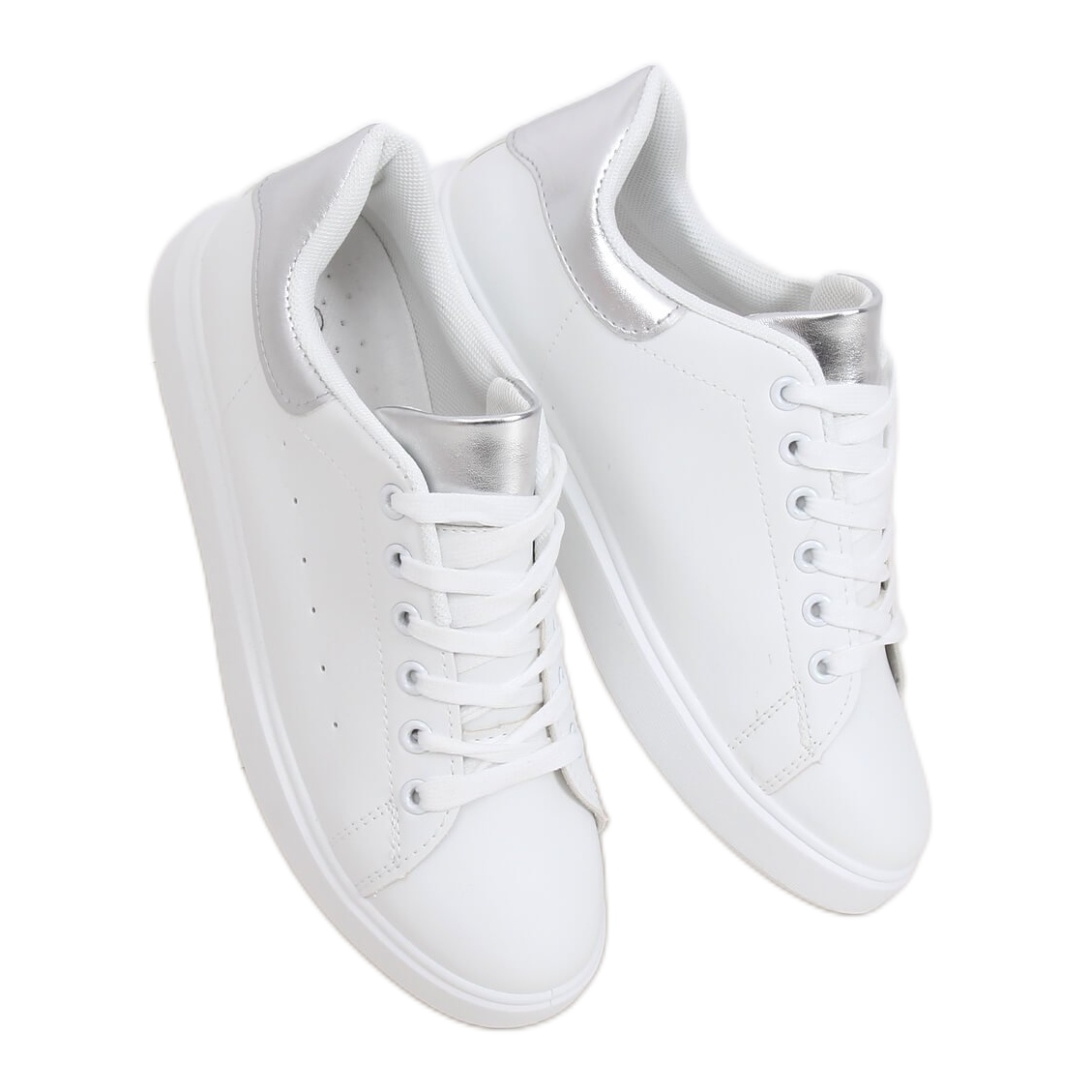 Women's white sneakers LA85P Silver are the perfect choice for all women who value both style and comfort. The classic, lace-up model with contrasting inserts fits into the latest fashion trends, while remaining a universal solution for everyday use. These light and comfortable sneakers will certainly become an indispensable element of your wardrobe.