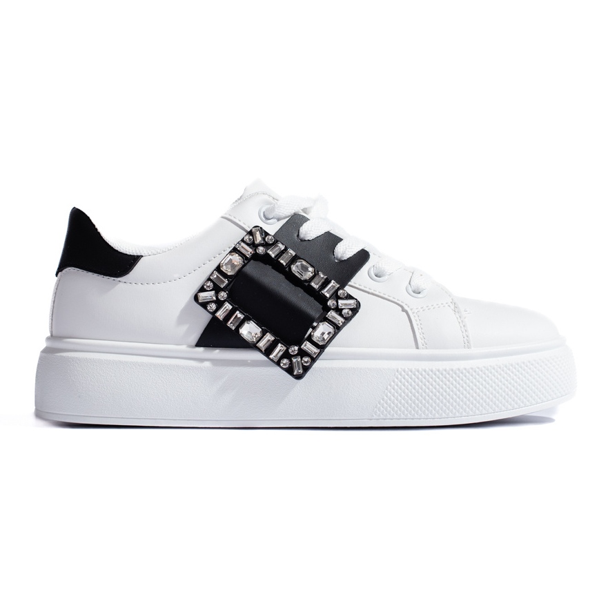 An additional advantage of this model are subtle zircons, which give the shoes a unique and stylish look. Thanks to the neutral colors - white with black accents - these sneakers will perfectly match various outfits, both in spring and summer, as well as on colder autumn and winter days.