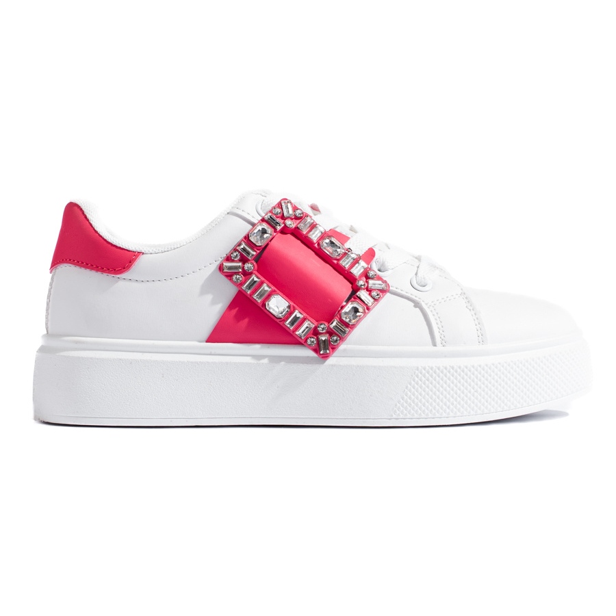 Stylish white women's sneakers with a pink insert Shelovet are the perfect choice for women who value comfort and a fashionable look. These sports shoes, available in white with charming pink accents, will perfectly fit into everyday stylings, adding them freshness and lightness.